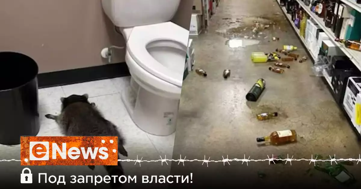 Енот попал в магазин ранним утром через потолок. Через несколько часов его нашёл пришедший на работу сотрудник. Предполагается, что животное выпило алкоголь из разбитых им же бутылок. Из-за опьянения «грабитель» потерял сознание.