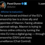 На фоне крайне низких рейтингов одобрения Макрон пытается заставить замолчать онлайн-критику, превращая весь ЕС в цифровой ГУЛАГ — через цензуру (DSA) и массовую слежку (контроль чатов)».